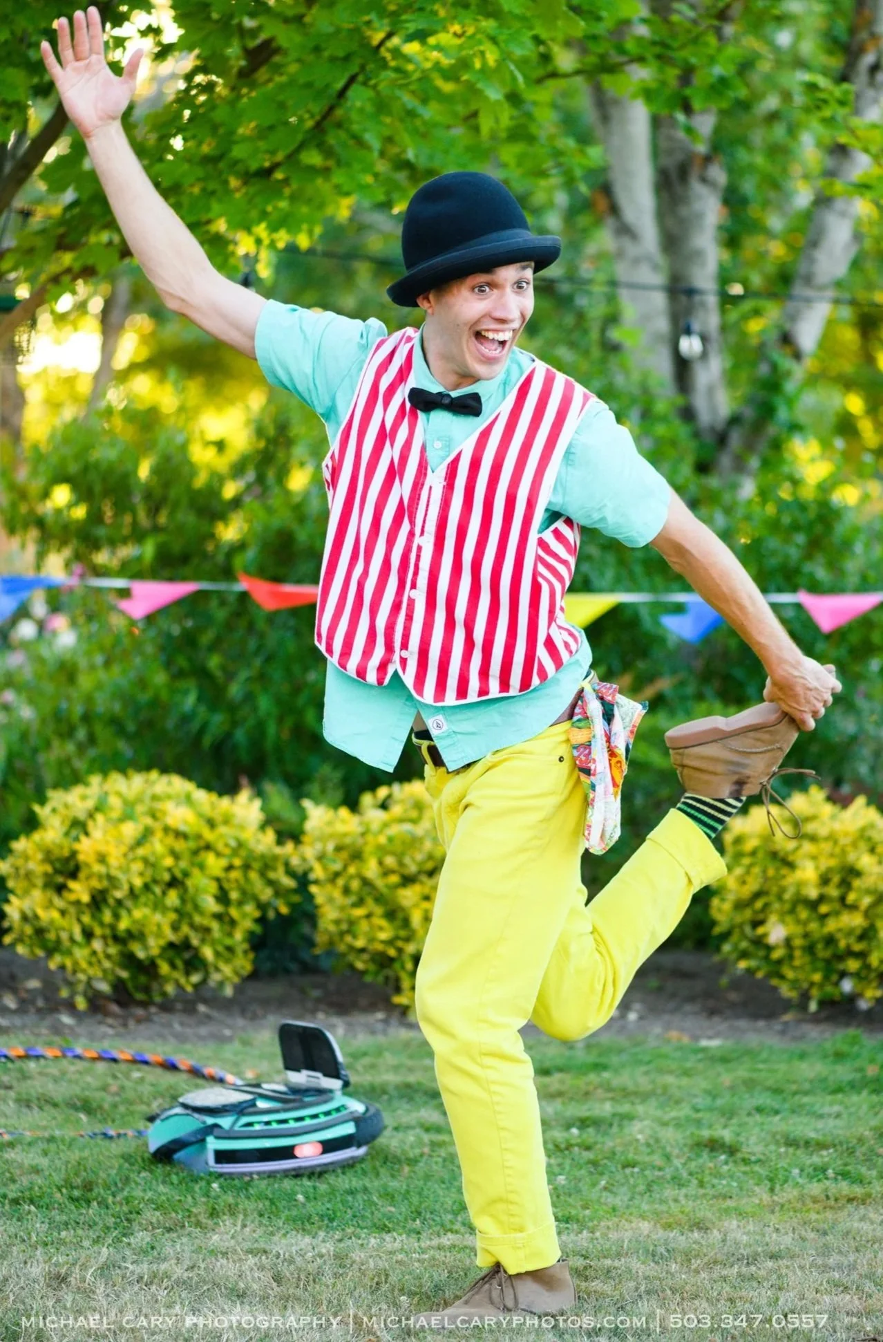 My entertainment journey began in 2011 as a Summer Camp Counselor with Portland Parks and Recreation. Leading large, energetic groups quickly unleashed my natural talent for engagement, comedy, juggling, and physical humor. Camp was my ultimate training ground, where the tough and honest feedback from young audiences proved to be the most invaluable factor in rapidly developing my performance style.